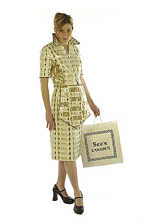 from the See's Chocolate fundraiser bars, plastic and fabric.